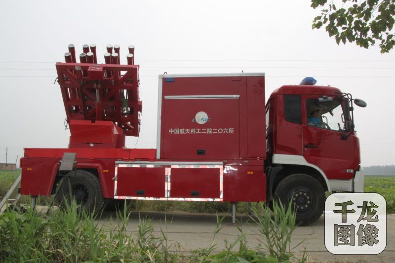 邱旭阳,中国航天科工206所军民融合项目总设计师,也是“灭火导弹”的研发专家。图为投弹式高层建筑消防车。图片由 206所提供。
