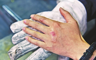 在焊接120吨炼铜转炉托圈时,要求焊缝要达到一级焊缝,也就是焊缝中连针眼一样的气孔都不允许存在,还要通过超声波探伤检验。杨文燕大胆创新,通过焊接、观察、碳弧气刨清理、砂轮打磨等工序,最终凭借镇静和一丝不苟,硬是拿下了这块硬骨头。⑤3黄政伟 摄影报道