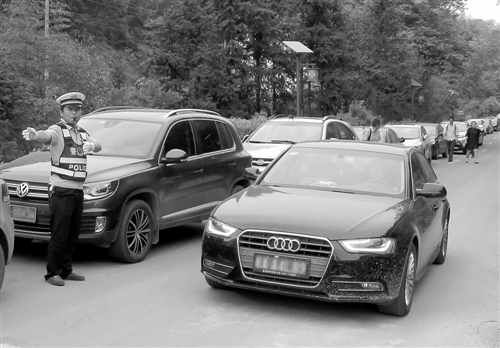 上图 “五一”期间,安徽六安市金安区公安局组织百余名民警进驻皖西大别山风情谷、悠然南山度假区、张家店战役纪念馆等当地旅游景点,维护景区治安秩序,确保观光游客的安全。图为5月1日下午张店派出所民警在大别山风情谷执勤。 刘容海摄