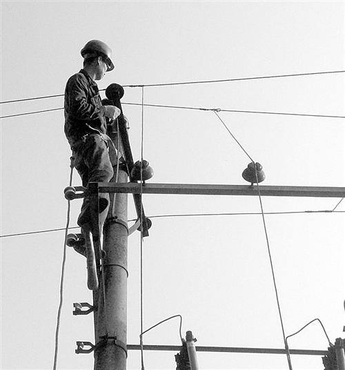 上图 5月1日,湖北谷城县供电公司员工在抢修10千伏银谷联三线刘家沟一号台区破损的瓷瓶。经过紧急维修,当地很快恢复供电。 马明刚摄