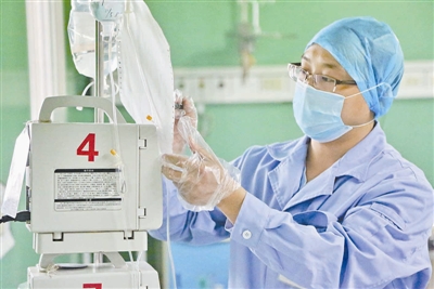 5月12日,秦皇岛海港医院,ICU男护士正在为病人换液。5月12日是国际护士节,尽管护士是女子的优势职业,但在秦皇岛海港医院,ICU、手术室、急诊室等科室都不乏男护士。对于他们来说,上班连轴转、下班倒头睡是经常的事儿。面对别人的质疑,他们用行动来回答:作为护士,没有男女之分,帮患者恢复健康是所有医护人员的心愿。(朱润胜 曹建雄)