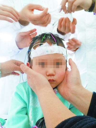 经过核磁共振,沐沐被查出患有颅咽管瘤,有鹌鹑蛋那么大,瘤子就长在眼睛正后方,脑垂体边,已经压迫视交叉神经。为了不延误病情,蔡勇不知道跑了多少家医院。终于在当年8月1日,沐沐进行了脑部手术。