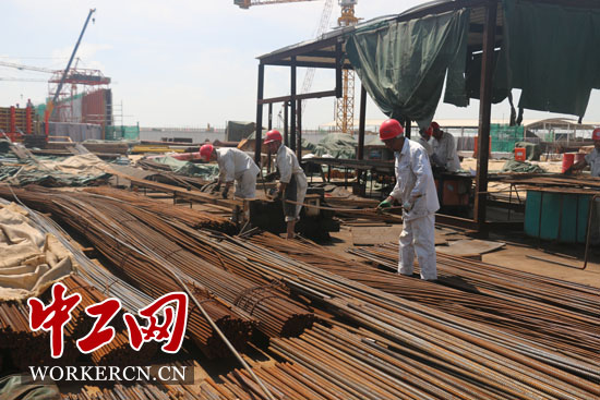 工人在切割钢筋。中工网记者朱晶晶摄
