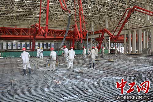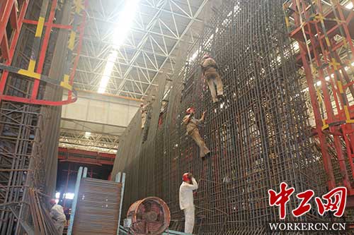 正在给沉管浇灌水泥的工人。中工网记者朱晶晶摄