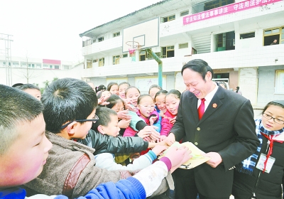 图为郭兴利在剑阁县开封小学向学生宣讲法律知识。郭勇摄/光明图片