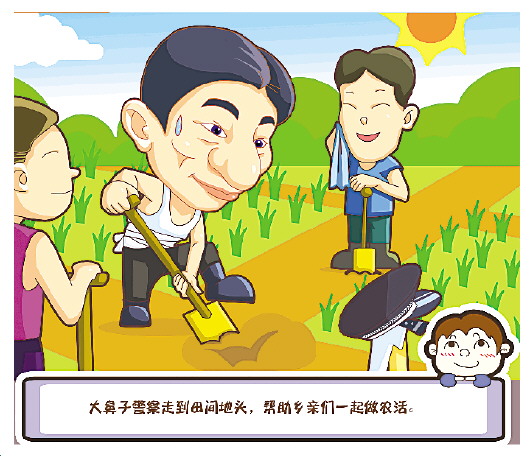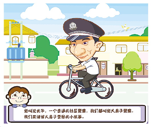 沈长华与漫画作者沈玉川的结缘,还要从去年夏天说起。沈玉川是南通市通州区一家动漫公司的设计师。2015年夏天,沈玉川在石港镇花市街一带采风,在与当地村民的闲聊中,了解到当地有个“大鼻子民警”,鼻子特别大,非常有特色,就像电视里的动漫人物。