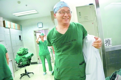 做完手术来不及换衣服就开始下门诊,半天门诊量能达70多人,他常是科里最后一个下班的。