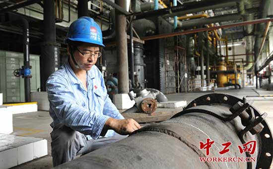 2号机组低加疏水泵轴承振动大是多年困扰新余发电公司汽机本体班的一道难题。一次大修机会,徐凯作为工作负责人接手了这个棘手的问题。在对疏水泵解体,并仔细检查后,徐凯发现并不是轴本身变形,而是自由端轴承端盖的凸台有轻微椭圆变形现象,使得端盖与轴承之间的间隙产生变化,从而导致轴的中心位置在自由端偏心,引起水泵运行时振动超标。更换端盖需要报采购计划,不仅会影响工期而且会增加大修费用。于是,徐凯就琢磨着自己怎么把这个端盖凸台修正回来。他拿着端盖,没有急着动手,而是先用卡尺进行精确的测量。而后用工具一点点锉圆。这一干就是4个小时,连午饭都没来得及吃,视线始终没有离开过手里工具。经过打磨修锉后,端盖与轴承完全匹配。装复后,疏水泵轴承振动的的顽疾被彻底治愈。