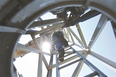 桥梁检测员顶着烈日工作。 孙逸飞 邵 丹摄