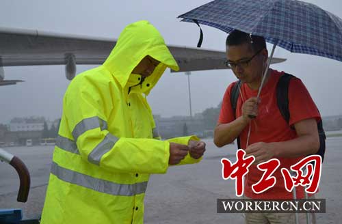 “没办法,每年夏天我们都会经历几次这样的天气,其实大家也都习惯里,越是这种恶劣的天气,就越有可能发生一些不安全事件,所以每次执行监护任务我们都会格外用心,”商伟立一边擦拭着脸上的雨水一边查验登机人员的证件。
