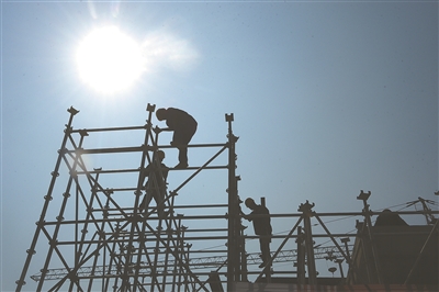 中铁四局工人烈日下奋战在南京纬七路工程。 尤嘉乐 万程鹏摄