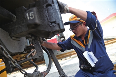 王磊负责给火车加水,每人负责3节车厢,每天要给近60列火车加水。