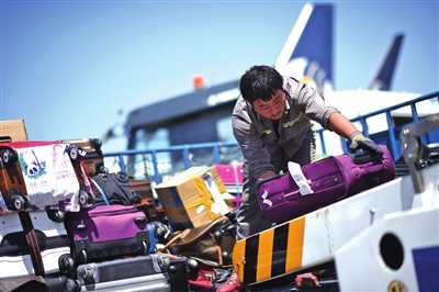 银川河东国际机场,货运部每人每天平均需要搬运近10吨的货物。