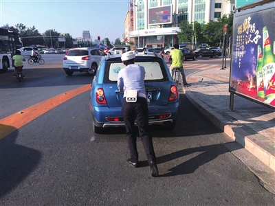 昨天上午,一辆小轿车半路抛锚,协警李娜上前推车,直到将抛锚车辆推到安全地带才离开。
