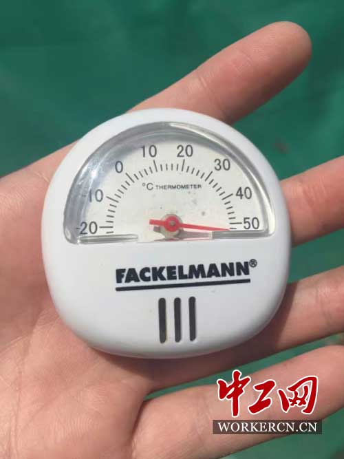 记者用温度计测量出,这里的空气温度已经超过了50度,库区垃圾覆盖膜上的温度最高可达75摄氏度,皮肤不能直接接触这些塑料膜,所以工人们都要穿上长裤长袖,不一会儿衣服就全湿透了。