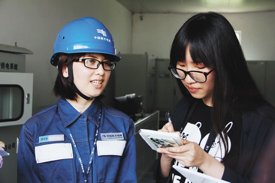 大学生记者罗智凌正在和祝文姬博士深入交谈 山东大学 魏廷义