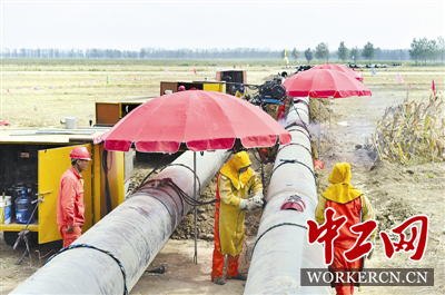 图为青岛港董潍管线建设现场。