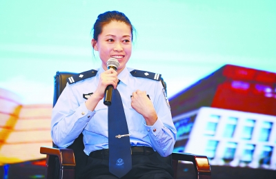 女交警张蕊做客市民大讲堂,讲述从陆战队员到交警的精彩故事 记者刘斌 摄