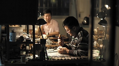 心灵手巧的潮绣大师洪虹仅用一根细针就能将金线、银线、绒线巧妙融合,创作出活灵活现的图案纹理。在牙雕大师翁耀祥的手中,刀尖与牙料的碰触如同知音相逢,在不足5厘米见方的空间里,雕琢数十层玲珑剔透的牙球球面。值得一提的是,为响应抵制象牙交易的“禁牙令”,翁耀祥使用的牙料来源于一万多年前的猛犸象牙。(章琰)