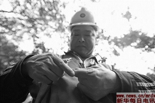 张贵洪每月穿破三四双解放鞋,一连几十天守在山上是家常便饭。经常是饿了,摸出冷馒头啃两口;渴了,埋头喝两口山泉水;困了,就把钢钎插在山坡上,靠着钢钎打个盹。
