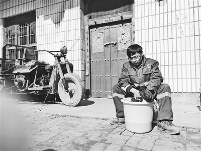 初春午后的阳光正暖,祁建光趁着午休时间,在院子里为父亲清洗衣物。