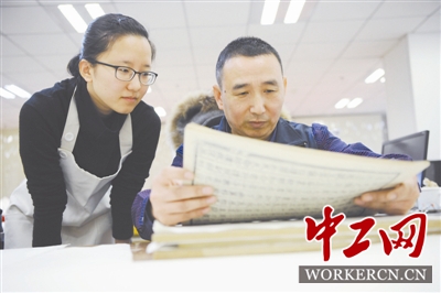 谈到时下热议的工匠精神,刘建明想起了自己的师傅——“国手”李士达老先生,“虽然师傅已经走了20多年,但他们那代人身上执着与认真的态度对我影响特别大。比如他会为了找一张更合适的书纸花费三五天的时间,师傅补过的书你基本看不出补过的痕迹。要我理解什么是‘匠心’,不过一个‘真’字。”