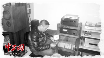 屋子中央一左一右立着两个音箱,看上去有点突兀。“什么位置放音箱效果最好,都是经过反复尝试和研究的。”2月24日,他指着音箱下面10厘米厚的青石板对《工人日报》记者说,“它有80斤重,音箱搁上面可以隔绝地板与脚架间的共振,使声音的传输更沉稳。”
