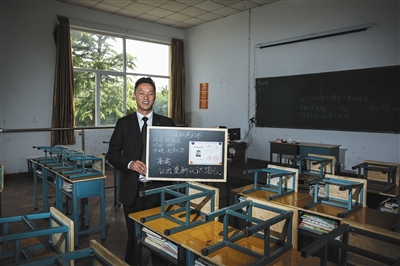 5月4日上午,张俊成脱下日常所穿的迷彩“军装”,换了一套笔挺的黑色西服,白色衬衫、打领带,皮鞋擦的锃亮,头发也打了发胶,齐刷刷梳向脑后,显得颇为精神。当天,他要给学生们上一堂礼仪课。