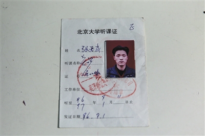 【高考印记】张俊成在北大当保安时的日记本和听课证。A12-A13版摄影/新京报记者 彭子洋