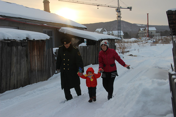 从来没见到过炉子的郭素丽首先就是要学会用炉子把屋子烧热。赵鲁杰所在的派出所承担着173公里的中俄边境线,2380平方公里的管理区,三个自然村,一个林场1443户3457人的治安管理,已创下连续11年无涉外事件、15年未发生重大刑事案件的记录。可想而知仅有的14名警官都相当繁忙。大斧子抡不动,郭素丽只能用小斧子劈柴,每次劈完手里都是一根根的刺。屋子没有保温层,所以烧一点火就热得不行,但是没有炉火一会儿又凉透了。