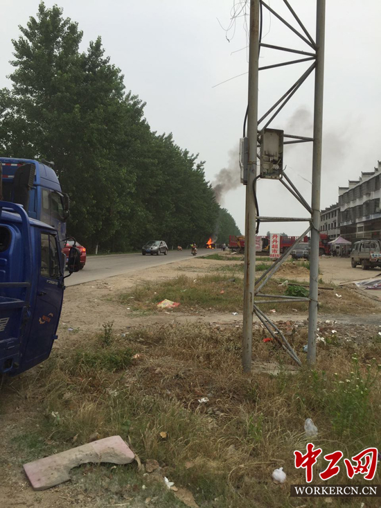 中工网讯 5月30日16:48时,中石化洪湖石油分公司峰口加油站员工吕新喜正在加油,突然发现距离加油站200多米处往仙桃方向的公路处浓烟滚滚,她连忙通知站长简力。简力跑到出站口一看,发现是两车相撞起火,火势约有5-6米高。