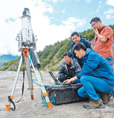 中科院成都山地所专家在考察现场。新华社记者 金立旺摄