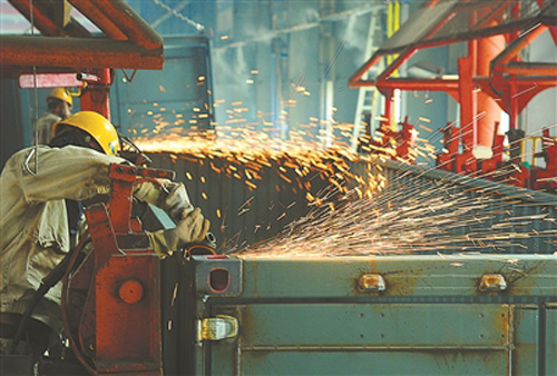 太仓一工厂员工正在焊接集装箱。 计海新摄 视觉江苏网供图