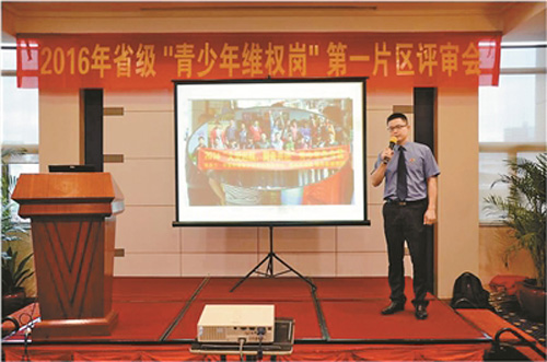 龚江在2016年省级“青少年维权岗”评审会上发言。