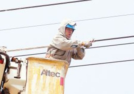 陈喜文在检修线路。10时50分地表温度36℃ 田晓君 摄