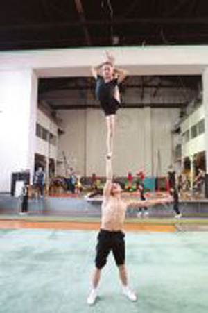 杂技团的小演员们正在排练高空动作。室外温度30℃ 本报通讯员 谢峰 摄