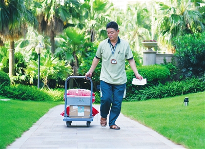 周沛娟和蔡夫彬是海口市邮政分公司滨海投递部里的夫妻投递员,自1994年在这里相遇,他们相扶相守,共同服务在投递一线已经23个年头。