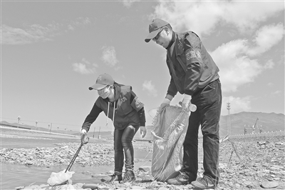 8月4日,甘德县第一支退休老干部志愿服务队成立,并开展环保志愿服务活动。志愿服务队由20名离退休退休老干部组成,他们统一着装——红马甲,手持志愿者服务队队旗,将在环境保护、社区共建、卫生绿化等方面继续发挥余热,为甘德县生态环境保护贡献自己的力量。(本报记者 张浩 通讯员 包安太 摄)