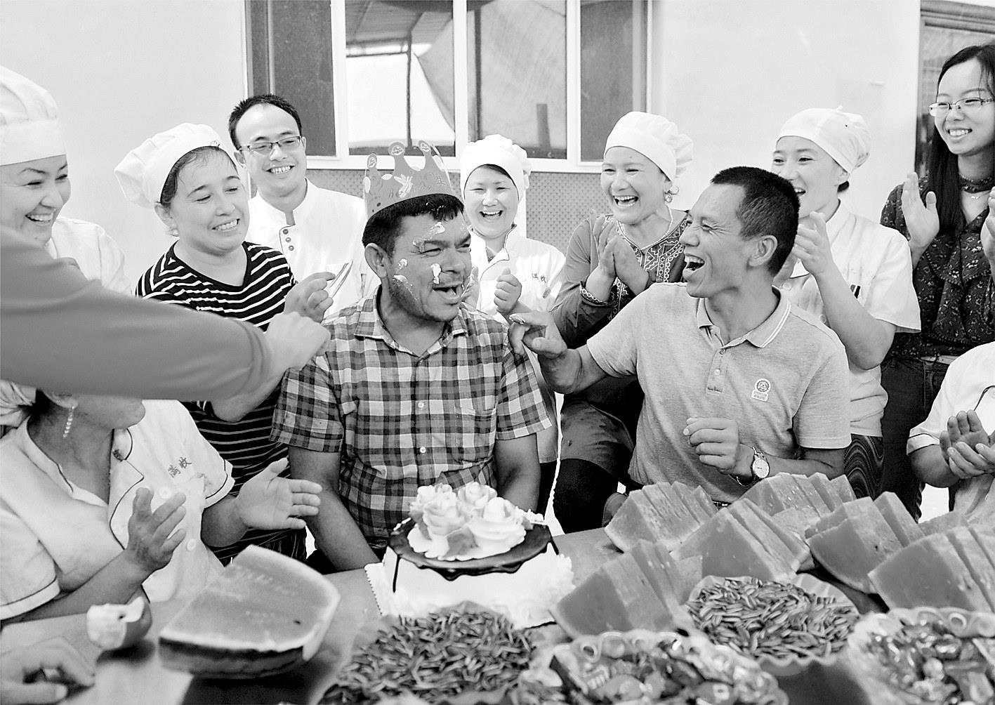 8月26日,李满收和员工一起为阿布德赛买提过生日。