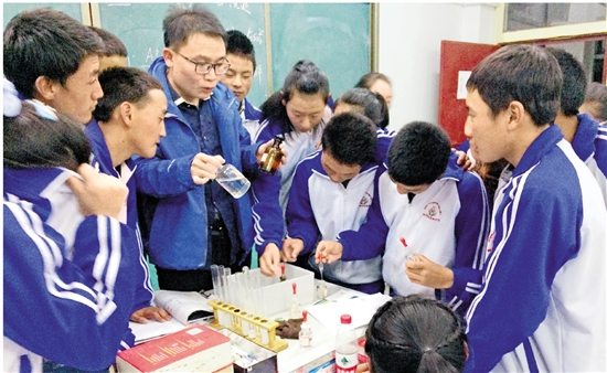西藏海拔高、温度低,化学反应速率很慢,在陈俊杰到来之前,那曲高级中学化学课是不做实验的。陈俊杰不仅把实验设备和奇妙的化学反应带进了那曲高中的化学课堂,他的教学方法也充满灵性。