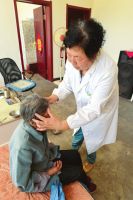 给村民李英子做头部按摩。