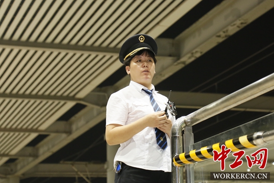 送走了一趟高铁的旅客后,李菊又来到站台进站口等待乘坐下一趟列车的旅客。(王振兴摄)