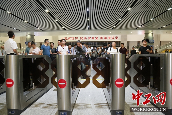 新乡东站自动的闸机前等待乘车的旅客们,将迎来李菊和她的同事们的温馨服务。(王振兴摄)