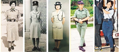 65年来,香港女警制服随时代变迁,也反映了男女平等和社会进步。以往,香港警队为避免女警因家庭影响工作,规定入职3年内不准结婚, 45岁便要退休。