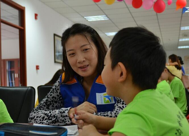 图为,在由北京市总工会组织的职工子女暑期托管班中,老师正在和同学们讨论问题。图片来源,中国青年网。