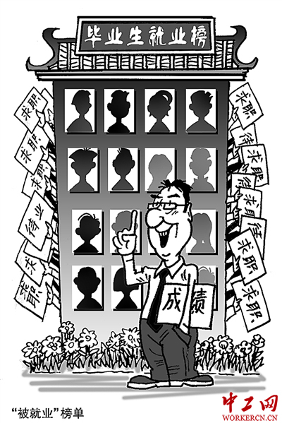 对于高校就业率,教育部门的态度值得玩味。一方面,教育部多次强调,对高校在就业率上造假将实行“一票否决”。另一方面,又加大就业率在高校教学评估中的权重。就业率高低成了衡量高校办学水平,甚至决定专业去留的硬指标,如教育部曾规定对就业率连续两年低于60%的专业,调减招生计划直至停招。在生存重压下,不管什么样层次的高校,就业率动辄高达90%.尽管对于其中掺杂了多少水分,人们心知肚明,不过也没见哪所高校在评估时被“一票否决”,高校高就业率的宣传调门越来越高。