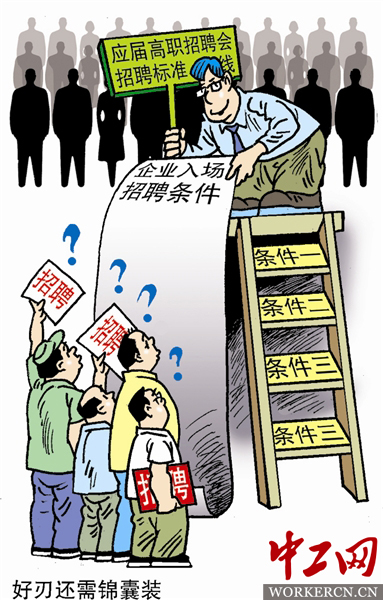 为企业进校招聘设立了“门槛”,没能达到他们设定的招聘标准线直接淘汰。为何这所职校如此“牛”?其实,学校设置的“招聘门槛”并不高——“至少能够保证学生就业时月收入能有2500元、社会保障的”五险“能够交齐”。2500元不是学校乱设置的,而是通过第三方调查机构测算出来的,是参照学校所在的武汉市基本生活支出来计算的,包括交通、房租、生活费、社交开支等;至于“五险”,这是最起码的,如果连这个都做不到,能让学生入“虎口”吗?从这个意义上说,学校设置“招聘门槛”是为了保障学生的权益,是为了让学生能够体现自身价值,值得点赞。