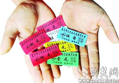 昨日,位于黄陂区滠口街的长松还建小区工地农民工向本报反映,该工地给工人们发“代金券”,而且只能在工地内部食堂和小卖部流通使用。“领多少券,最后结算时就抵扣多少工资。”(7月13日《楚天都市报》)