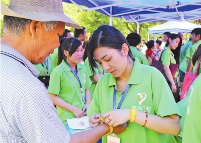 近年来,老年人外出途中发生意外、走失的报道屡见不鲜。昨日上午9时,随着一曲欢快的舞蹈,由中共洛阳市老城区委宣传部、洛阳市老城区文明办联合雄志公益共同举办的“关爱老人·孝感洛城”免费发放“黄手环”的大型公益活动,在老城区青年宫广场正式拉开序幕。(7月12日《大河报》)