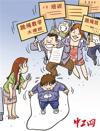 据《北京日报》10月26日报道,近年来,一些学校将跳绳项目纳入体育成绩考核要求,跳绳班一跃成为不少家长趋之若鹜的新晋热门培训班。这些跳绳培训班普遍价格不菲,每节课200元到400元不等,一期培训班至少需要三四千元。
